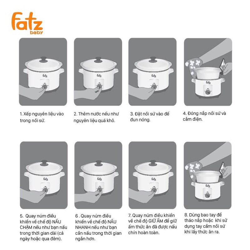 CÁC BƯỚC SỬ DỤNG NỒI NẤU CHẬM FATZ BABY: