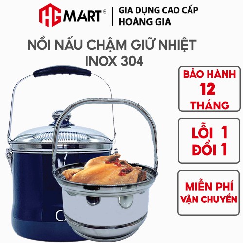 Nồi nấu chậm giữ nhiệt chân không đa năng Inox 304 Hoàng Gia HG Mart 7L dùng cho bếp ga Bảo Hành 12 Tháng