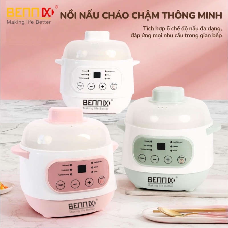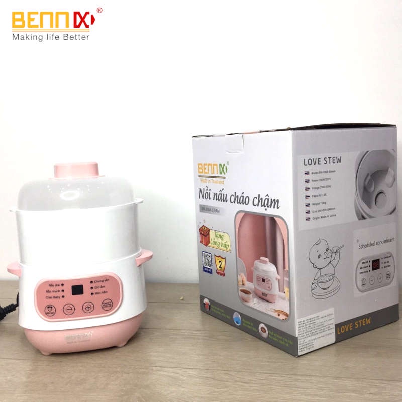 Nồi nấu chậm hấp cách thủy Bennix BN-100A-Steam dung tích 1 lít kèm xửng hấp bảo hành 12 tháng (giao màu ngẫu nhiên)