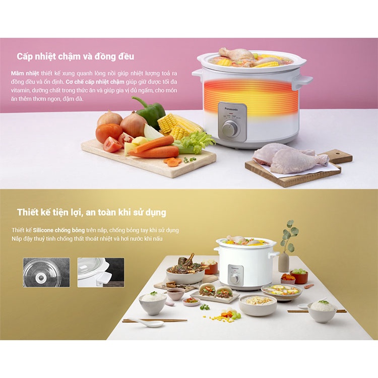 Nồi nấu chậm Panasonic không chỉ nấu mà còn như 1 thiết bị ủ giữ nhiệt giúp thức ăn nóng thật lâu, chín thật ngon.