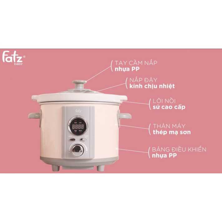 Chất liệu an toàn: Với thiết kế hiện đại, được làm chất liệu sứ ceramic, không độc hại, chống trào, chống sát dễ lau chùi… nồi nấu chậm Fatz Baby xứng đáng là món đồ không thể thiếu trong gia đình có bé đang bước vào chế độ ăn dặm.