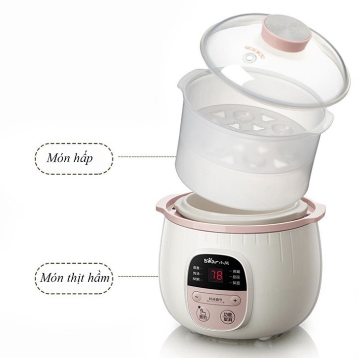 Thiết Bị Điện Gia Dụng > Đồ gia dụng nhà bếp > Nồi nấu chậm & Dụng cụ nấu chân không || [Mã 253ELSALE hoàn 7% đơn 300K] Nồi nấu cháo Bear 0.8l có lồng hấp + tặng kèm nồi thủy tinhCòn hàng
