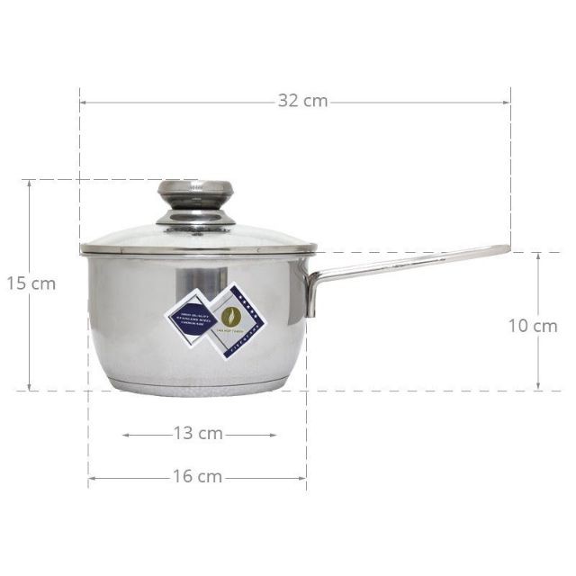 #nồinấucháobộtQuánh 3 đáy inox 430 Fivestar Standard nắp kính bếp từ FSQ16001 (16cm)