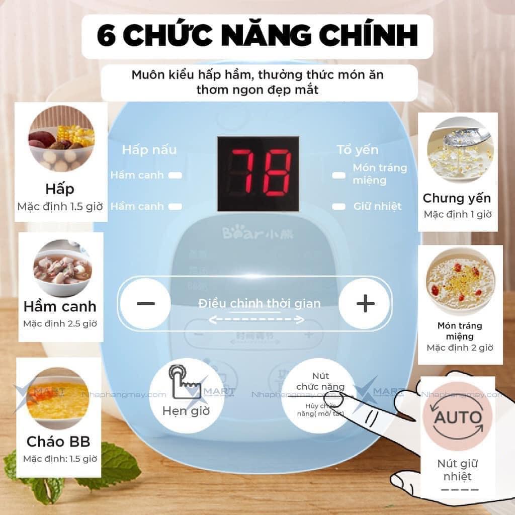 👉 6 tính năng : hấp, hầm canh, nấu cháo, chưng yến, súp chè, giữ ấm