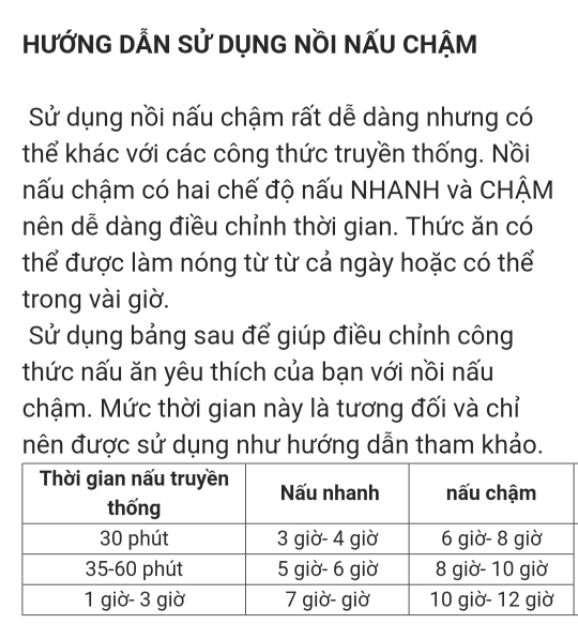 HƯỚNG DẪN SỬ DỤNG NỒI NẤU CHẬM