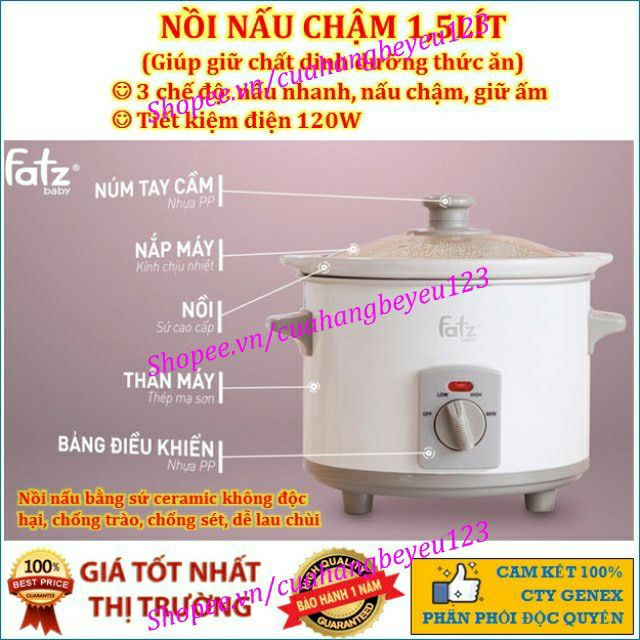 Nồi nấu cháo chậm 1,5Lít ăn dặm cho bé và gia đình FatzBaby FB9015MH - Fatz Slow 1