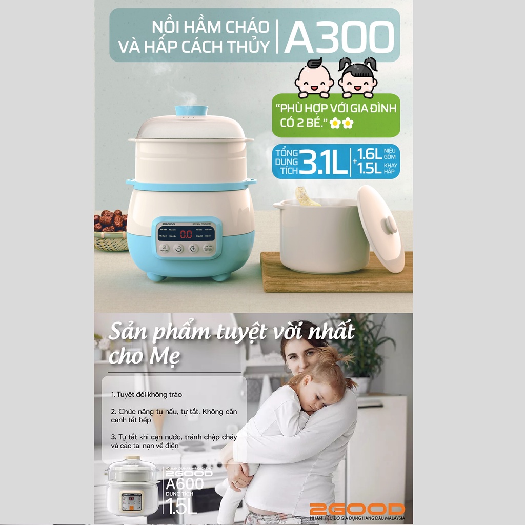 ✔️ Đặc điêm nổi bật nồi hầm cháo chậm cho bé 2GOOD A300