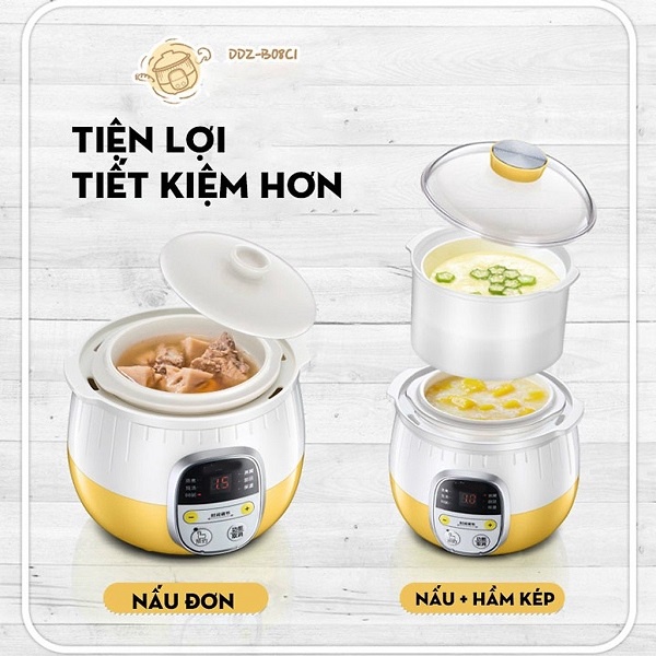 💦 7 chế độ nấu: Hầm canh, nấu cháo, nấu chè, chưng yến, món ngọt, món dinh dưỡng, giữ ấm.