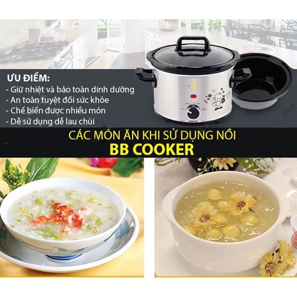 Thiết Bị Điện Gia Dụng > Đồ gia dụng nhà bếp > Nồi nấu chậm & Dụng cụ nấu chân không || [Mã 273ELHA100K0 hoàn 7% đơn 500K] Nồi nấu cháo chậm BB Cooker 2,5lCòn hàng