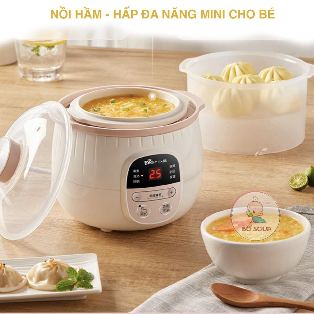 Giới thiệu Nồi Nấu Cháo Chậm Bear 0,8L Bản Quốc Tế Có Lồng Hấp Shop Bố Soup