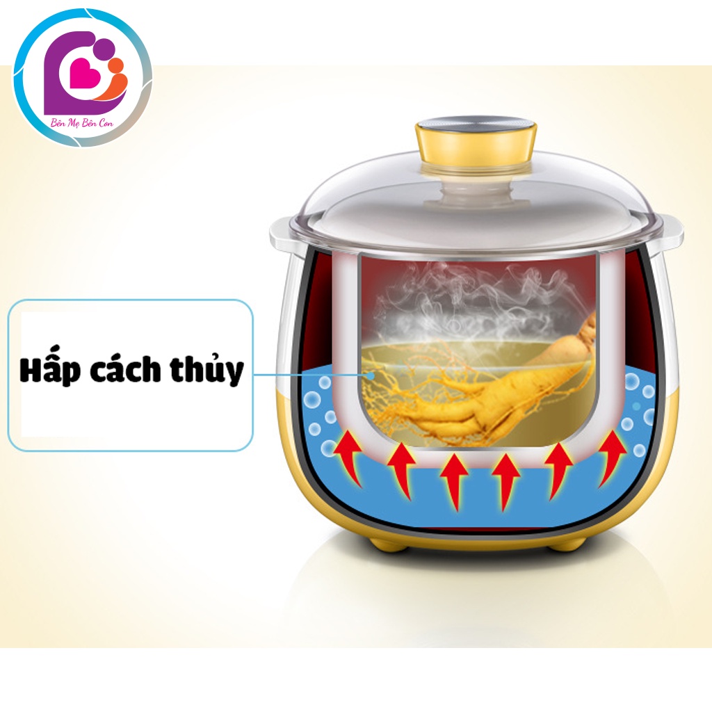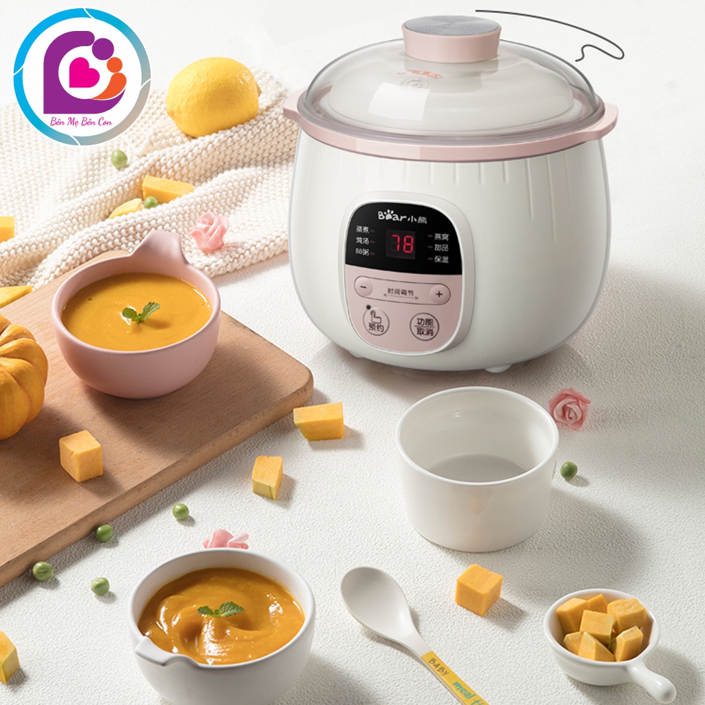 - Nồi nấu cháo chậm Bear sử dụng phương pháp đun, hầm dạng cách thủy. Điều này giúp cho toàn bộ chất dinh dưỡng trong thực phẩm được giữ lại trọn vẹn