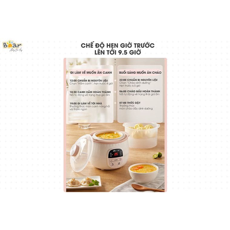 Nồi nấu cháo chậm Bear 0,8L bảo hành 18 tháng Mama baby vn