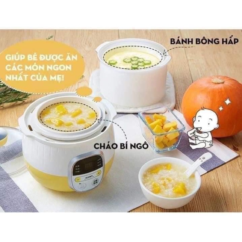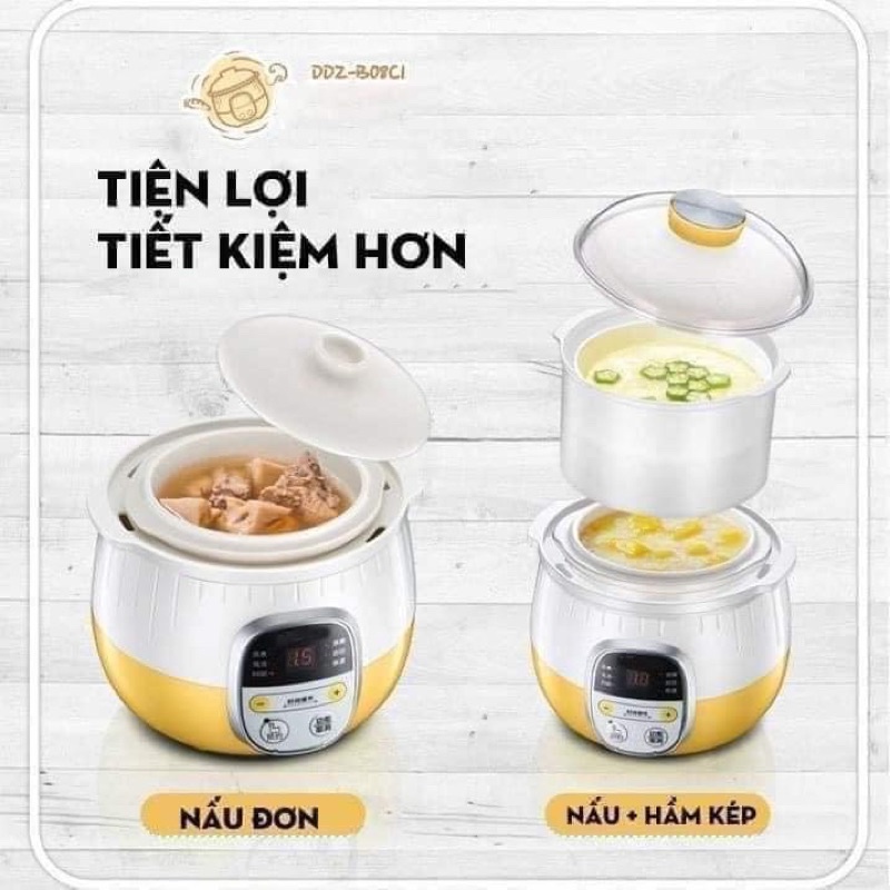 🍒Nồi nấu cháo chậm Bear 0.8L phiên bản quốc tế- 6 chức năng: hấp, hầm canh, nấu cháo, chưng yến, nấu chè, giữ ấm