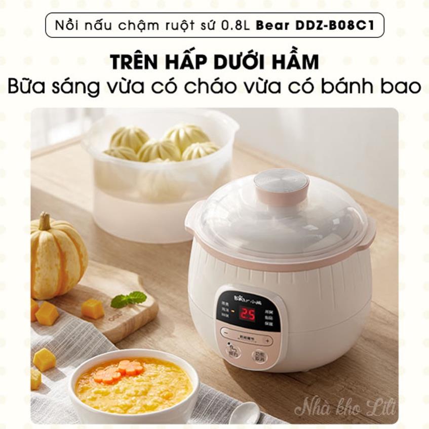 Nồi nấu cháo chậm bear phiên bản quốc tế, lõi sứ dung tích 0.8L, bảo hành 18 thángNồi nấu cháo chậm Bear có chức năng ninh hầm, cách thuỷ kèm xửng hấp, với 6 chức năng thông minh như hấp, hầm canh, nấu cháo, chưng yến, súp chè, giữ ấm vô cùng tiện lợi với các chế độ hầm nhanh và hầm chậm, chế độ tự động.
