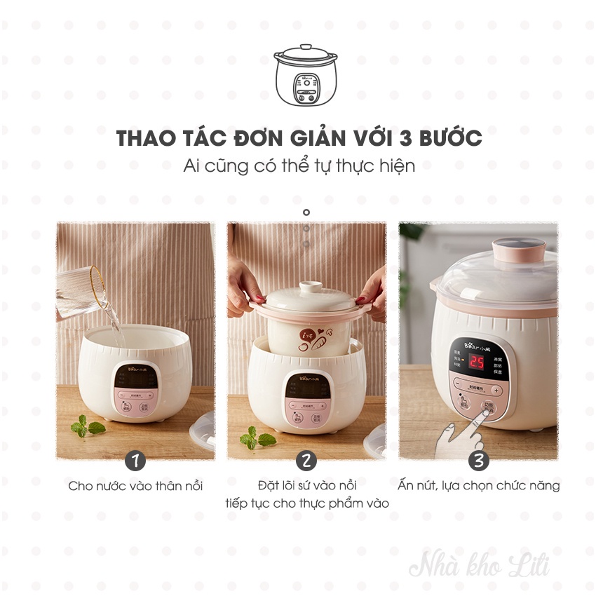 Thiết Bị Điện Gia Dụng > Đồ gia dụng nhà bếp > Nồi nấu chậm & Dụng cụ nấu chân không || Nồi nấu cháo chậm bear bản quốc tế, lõi sứ dung tích 0.8L, bảo hành 18 thángCòn hàng