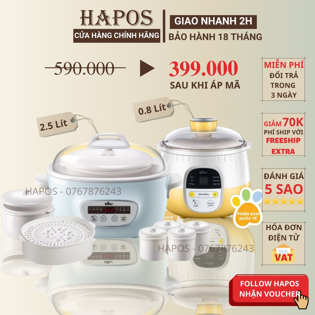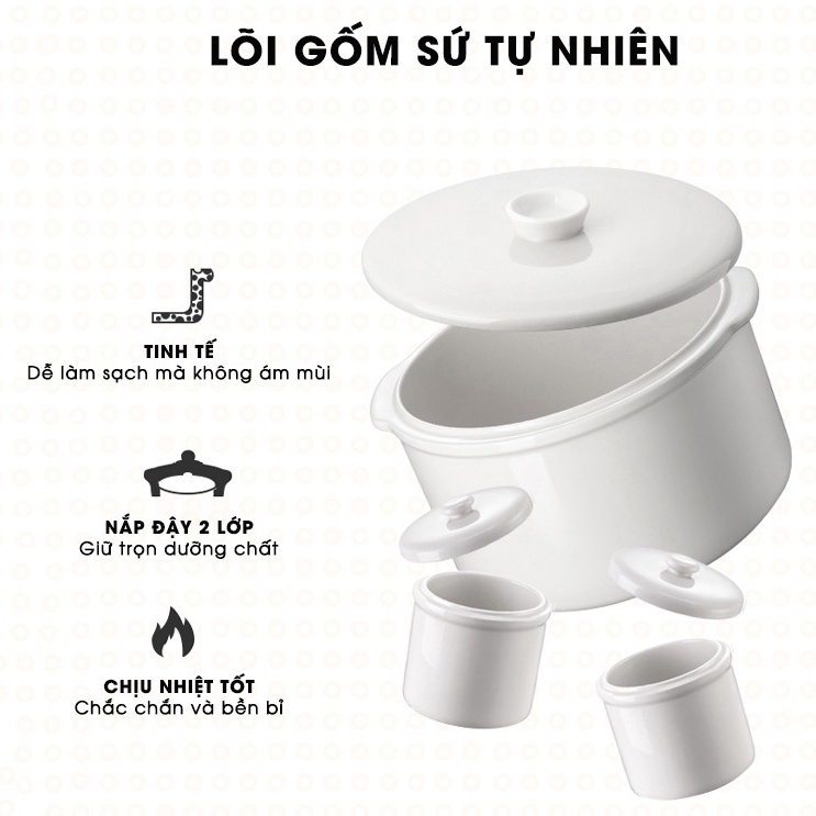 Nồi nấu cháo chậm Bear cho bé 0.8l - 1.6l 2 tầng, nồi hầm cháo cách thủy chưng yến nấu bột ăn dặm - Bản quốc tế - HAPOS