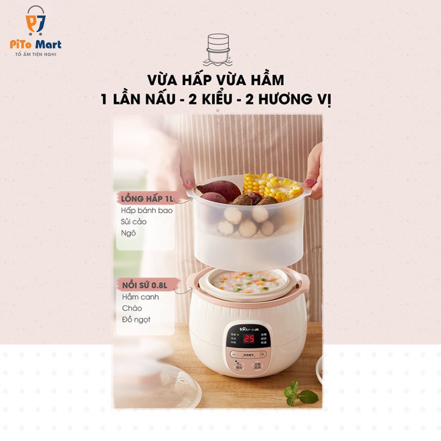 - Nồi nấu chậm 0.8L Bear nhỏ gọn mà đa năng, tối ưu hóa thời gian.