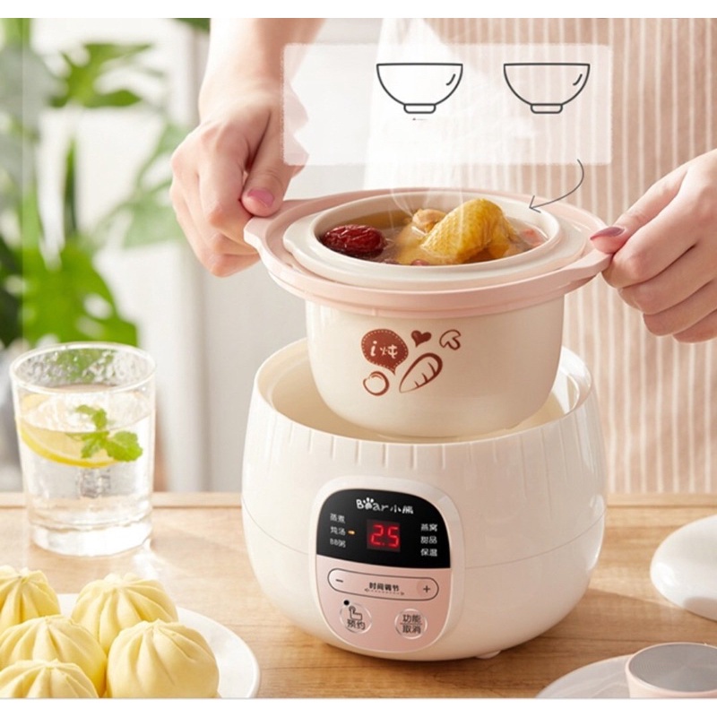 Nồi Nấu Cháo Chậm BENNIX, BEAR, Hầm Cách Thủy Dung Tích 1L Cao Cấp,Tiện Dụng,Dễ Vệ Sinh Lòng Nồi Bằng Sứ Giữ Nhiệt Tốt
