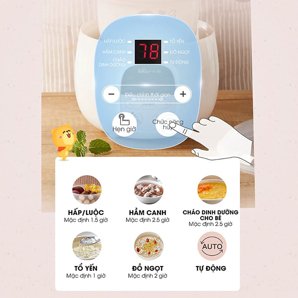 💨 6 tính năng : hấp, hầm canh, nấu cháo, chưng yến, súp chè, giữ ấm