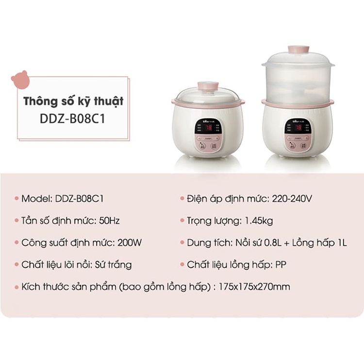 Nồi Nấu Chậm Cách Thủy 0.8L Bear SUBE001 - Nồi Nấu Cháo Chậm Giữ Lại Toàn Bộ Dưỡng Chất Trong Thực Phẩm Cho Bé Hấp Thụ*******************