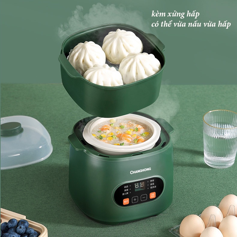 Nồi Nấu Cháo Chậm ChangHong Dung Tích 1 Lít Kèm Xửng Hấp - Nồi chưng yến, nấu cháo cho bé đa năng vt669