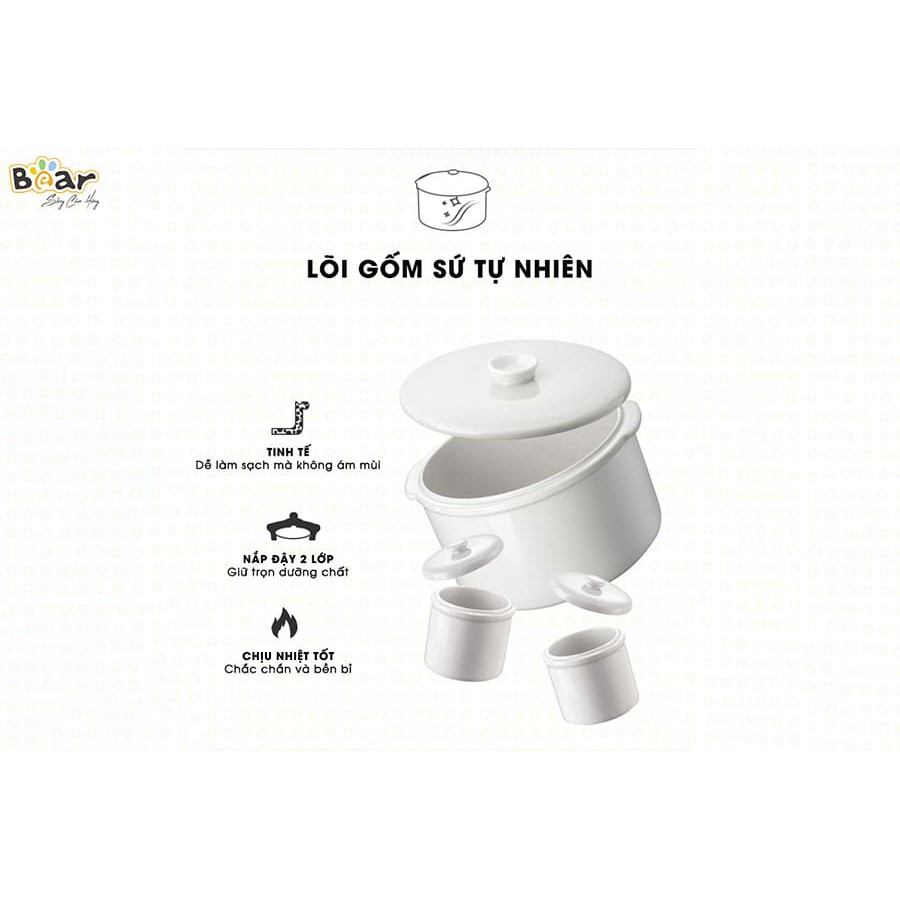 Nồi Nấu Cháo Chậm Cho Bé Bear, Hầm Cháo Chậm, Ninh Đa Năng Cho Bé_ Bear 2,5L, 1.6L_Kèm Lồng Hấp_Bảo Hành 12 T
