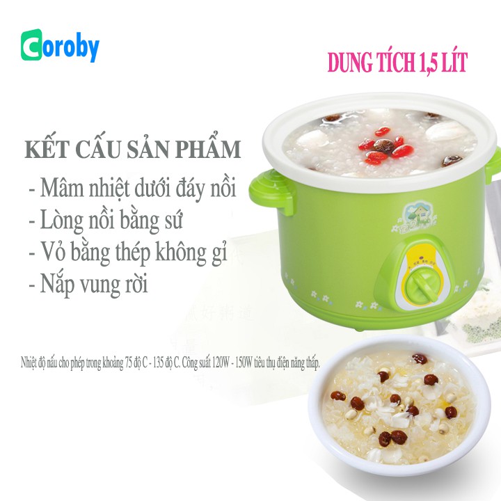 Nồi Nấu Cháo Chậm Cho Em Bé Đa Năng - Nồi Kho Cá - 1,5L Bảo hành 12 Tháng ( màu Xanh)