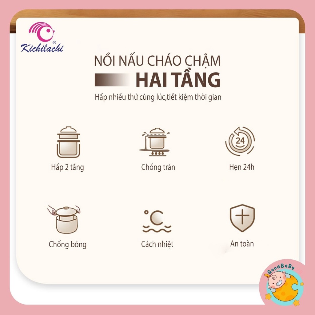 Nồi nấu cháo chậm đa năng cho bé ăn dặm Kichilachi 4in1 cao cấp bản Tiếng Việt Goodbabyvn