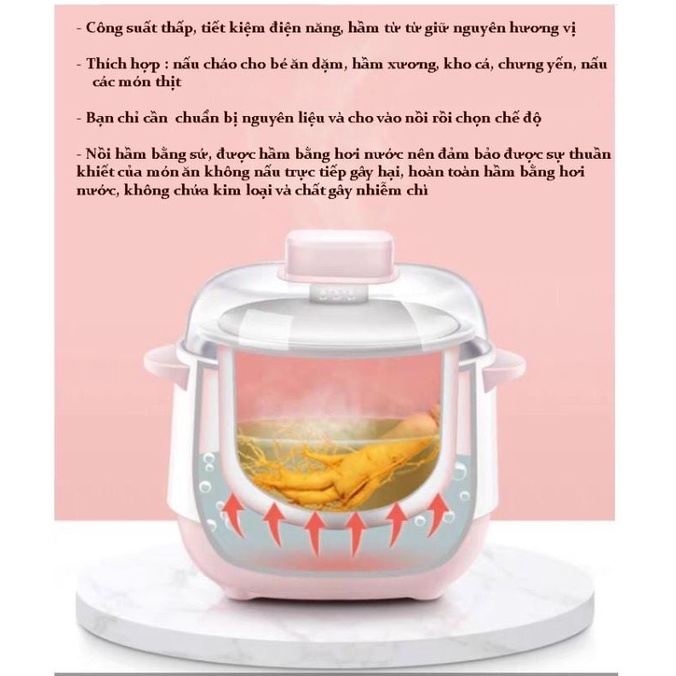 2. Có 6 tính năng : hấp, hầm canh, nấu cháo, chưng yến, súp chè, giữ ấm