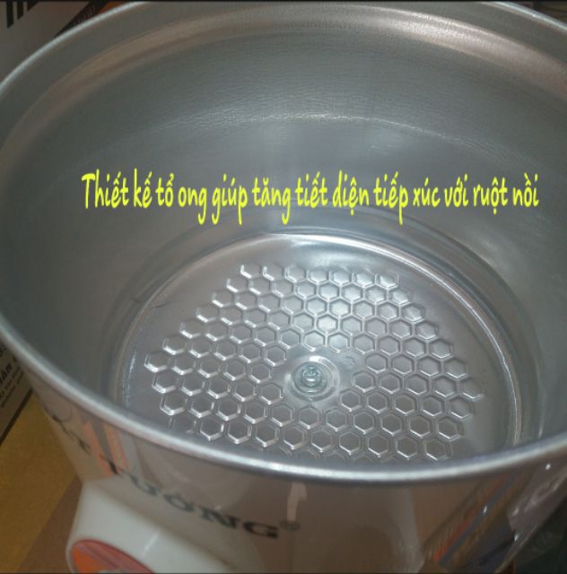 >> Đáy nồi thiết kế dạng tổ ong giúp gia tăng tiết diện tiếp xúc với lõi nồi