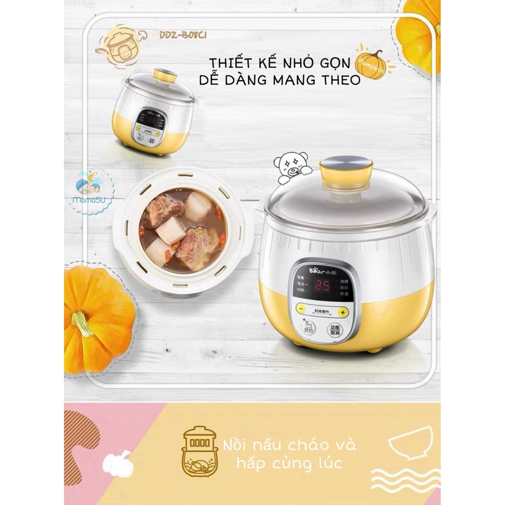 Nồi Nấu Cháo Chậm, Nồi Hầm Chậm, Nồi Ninh Cách Thủy Đa Năng Kèm Lồng Hấp Bear