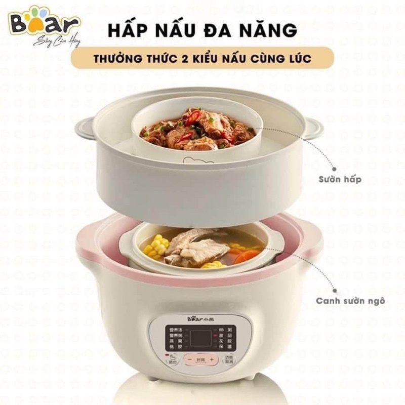 1,6L Nồi Nấu Cháo Chậm, Nồi Ninh Hầm Đa Năng, Nấu Cách Thủy Cho Bé BEAR 1,6L - Bản Quốc Tế BH Chính Hãng 18 Tháng