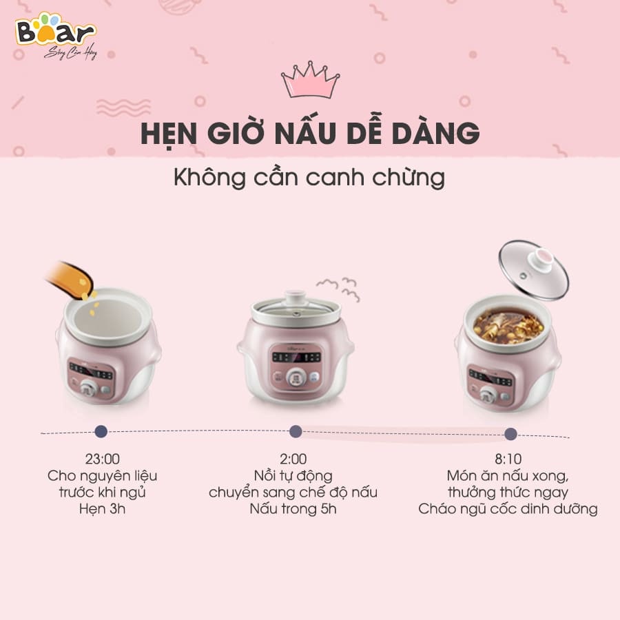 Giới thiệu Nồi Nấu Cháo Cho Bé Hầm Chậm Đa Năng Đẹp Tiện Dụng Bear Dung tích 1 Lít DDZ-D10B1S- HiMect