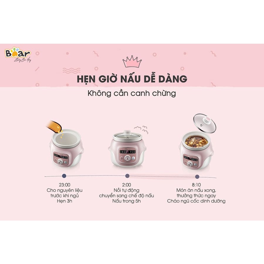 Nồi Nấu Cháo Cho Bé_Nồi Hầm Cháo Chậm, Nồi Nấu Chậm, Ninh Cháo Đa Năng Bear DDZ-B08C1 0.8L_Bảo Hành 12 Tháng
