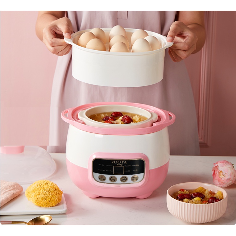 Nồi Nấu Cháo Cho Bé, Nồi Nấu Cháo Chậm, Chưng Yến Đa Năng 0.8L Yoota Bảo Hành 12 Tháng