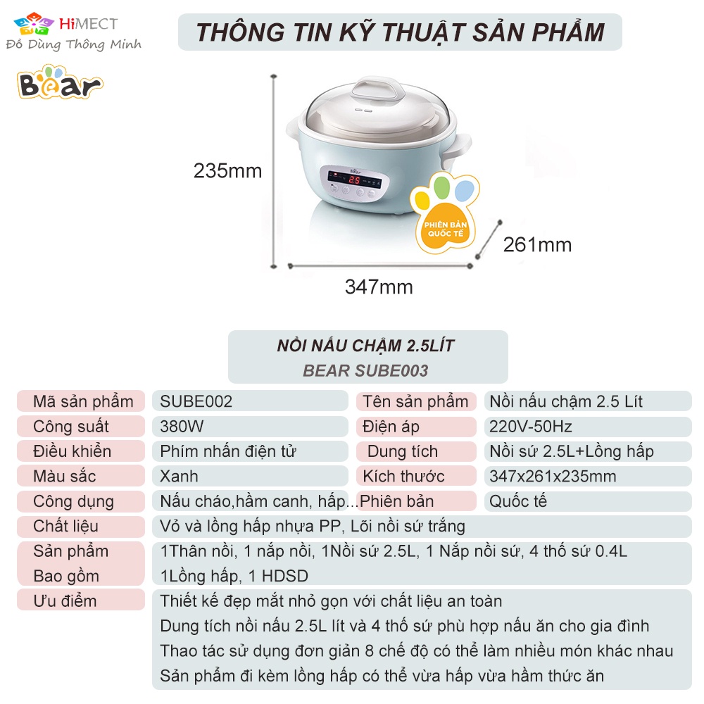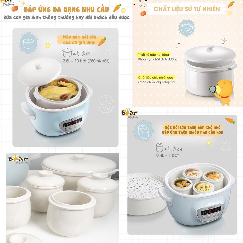 📣 Nồi Nấu Cháo Cho Bé, Nồi Nấu Chậm Bear 2.5L Ninh Hầm Cách Thủy Đa Năng Cao Cấp Sube003-Himect✔ Nhà sản xuất: Bear