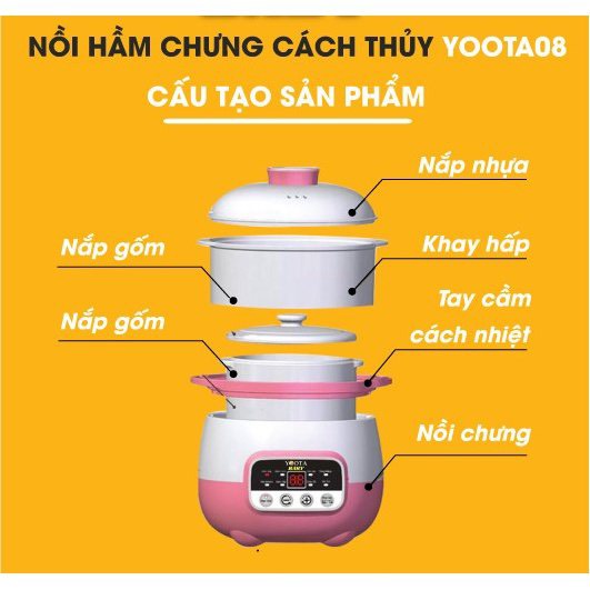Giới thiệu [Mã 55ELSALE1 giảm 7% đơn 300K] Nồi Nấu Cháo, Chưng Yến Nồi Hầm Chậm Và Hấp Cách Thủy Đa Năng YOOTA