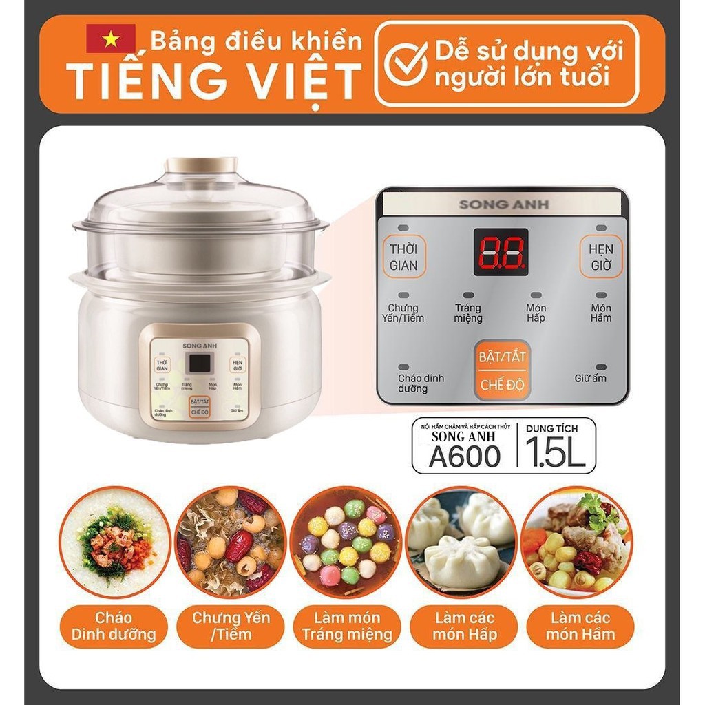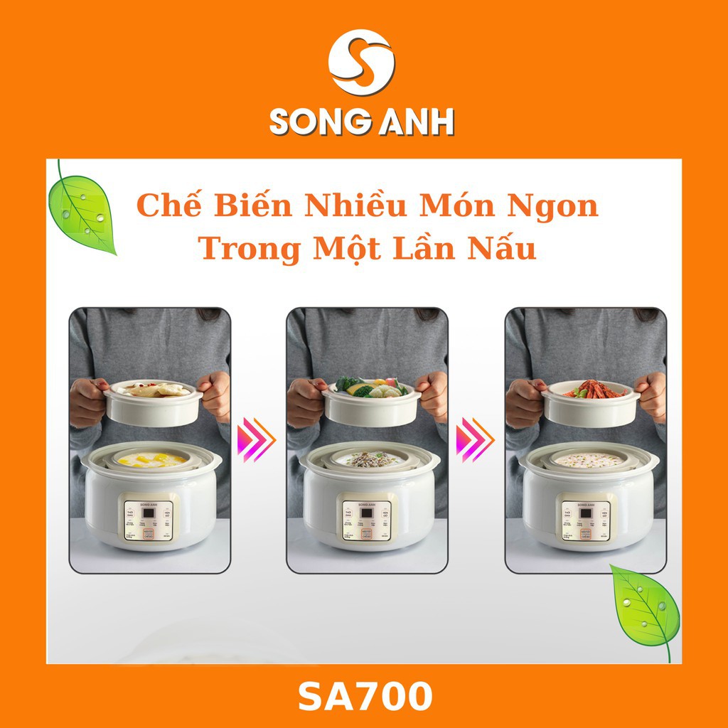 Nồi Nấu Cháo, Chưng Yến Nồi Hầm Chậm Nấu Cháo Cho Bé Hấp Cách Thuỷ Đa Năng Song Anh A600