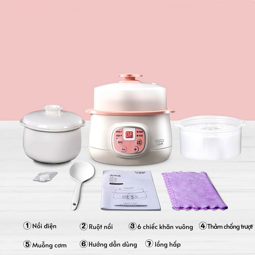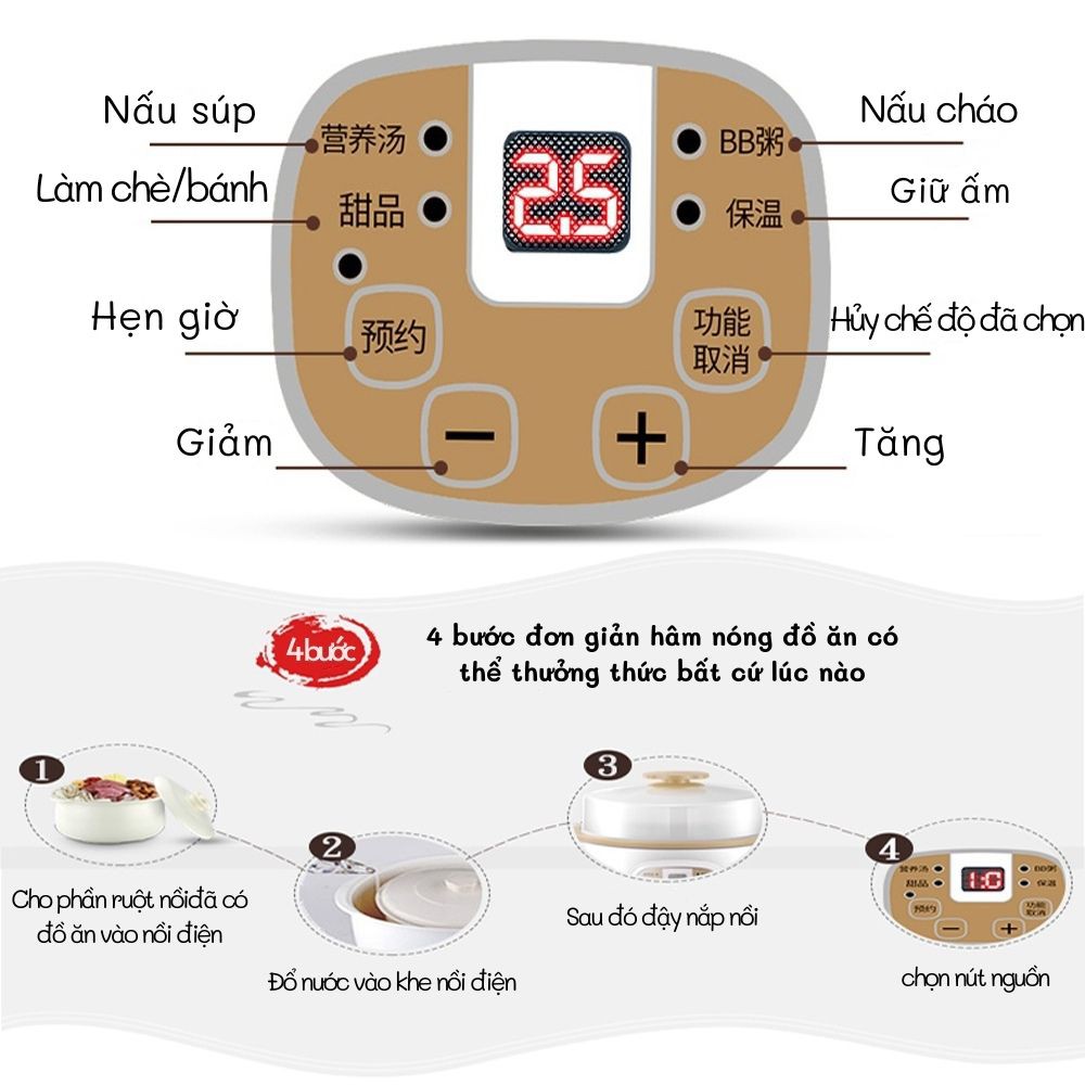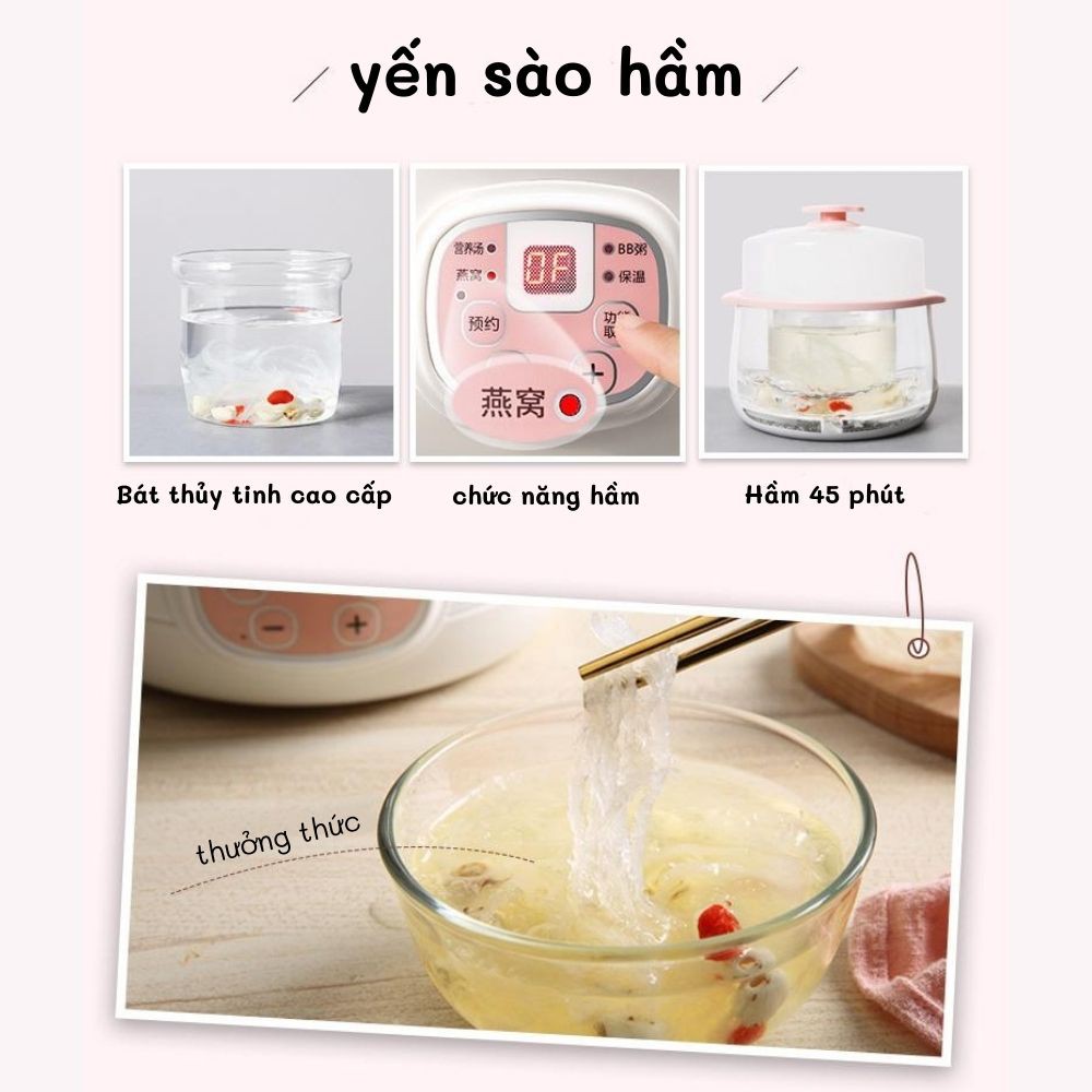 👉 6 tính năng : hấp, hầm canh, nấu cháo, chưng yến, súp chè, giữ ấm