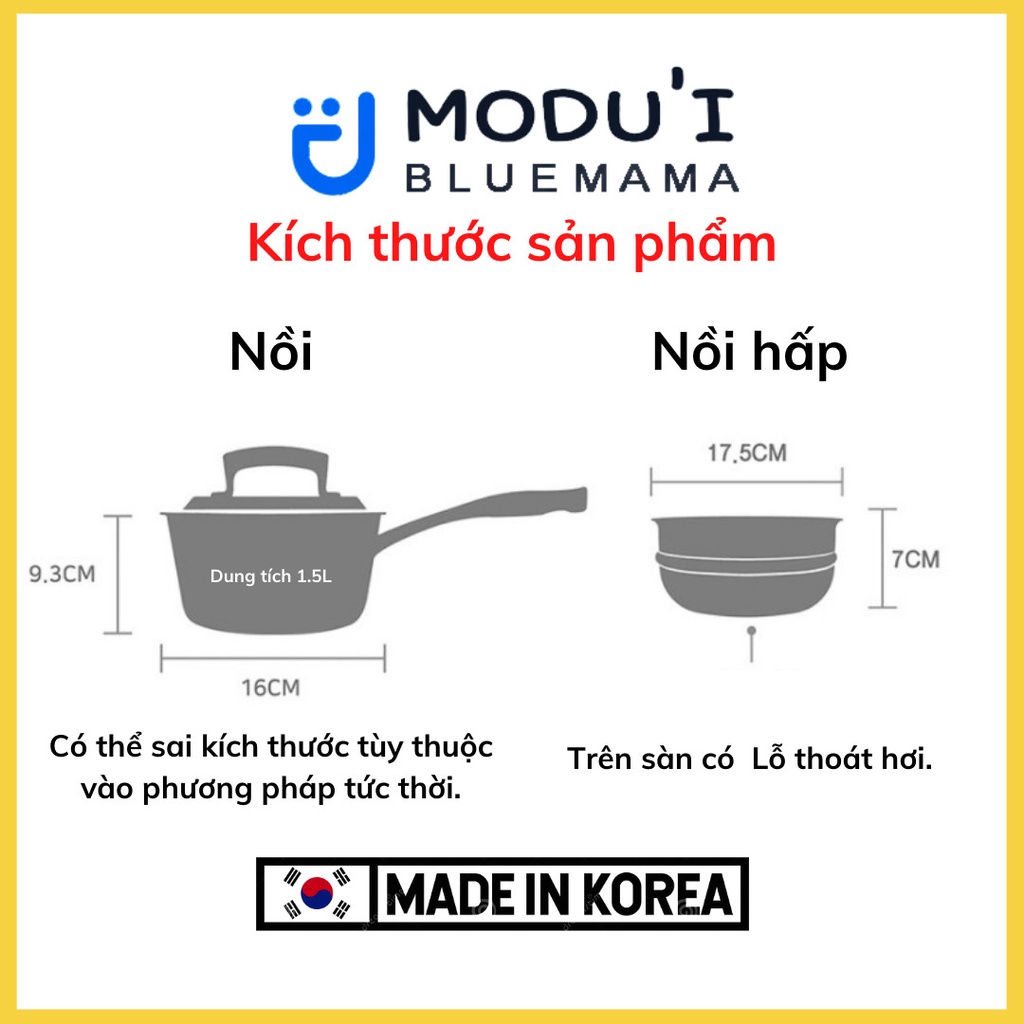 - Nồi quánh nấu bột 2in1 Modui Bluemama dùng cực bền, thu nhiệt nhanh, tỏa nhiệt đều, giữ nhiệt lâu, chống oxy hóa, chống cháy khét, dễ chùi rửa.