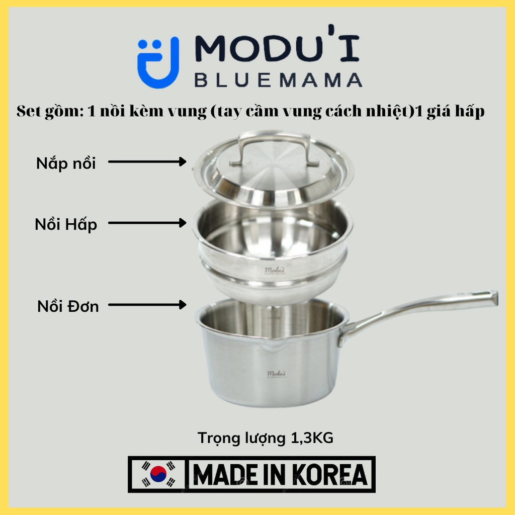 👉 Ba mẹ cần tư vấn thêm về sản phẩm Nồi quánh nấu bột inox 5 đáy 2 IN 1 Modui Bluemama trợ thủ cho mẹ nấu bếp vui lòng inbox shop nhé ạ