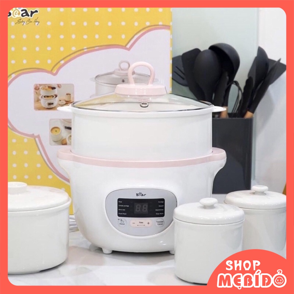 Nồi Nấu Cháo Ninh Hầm Cách Thuỷ Cho Bé Bear 1,6L Shop Mẹ Bí Đỏ GD13