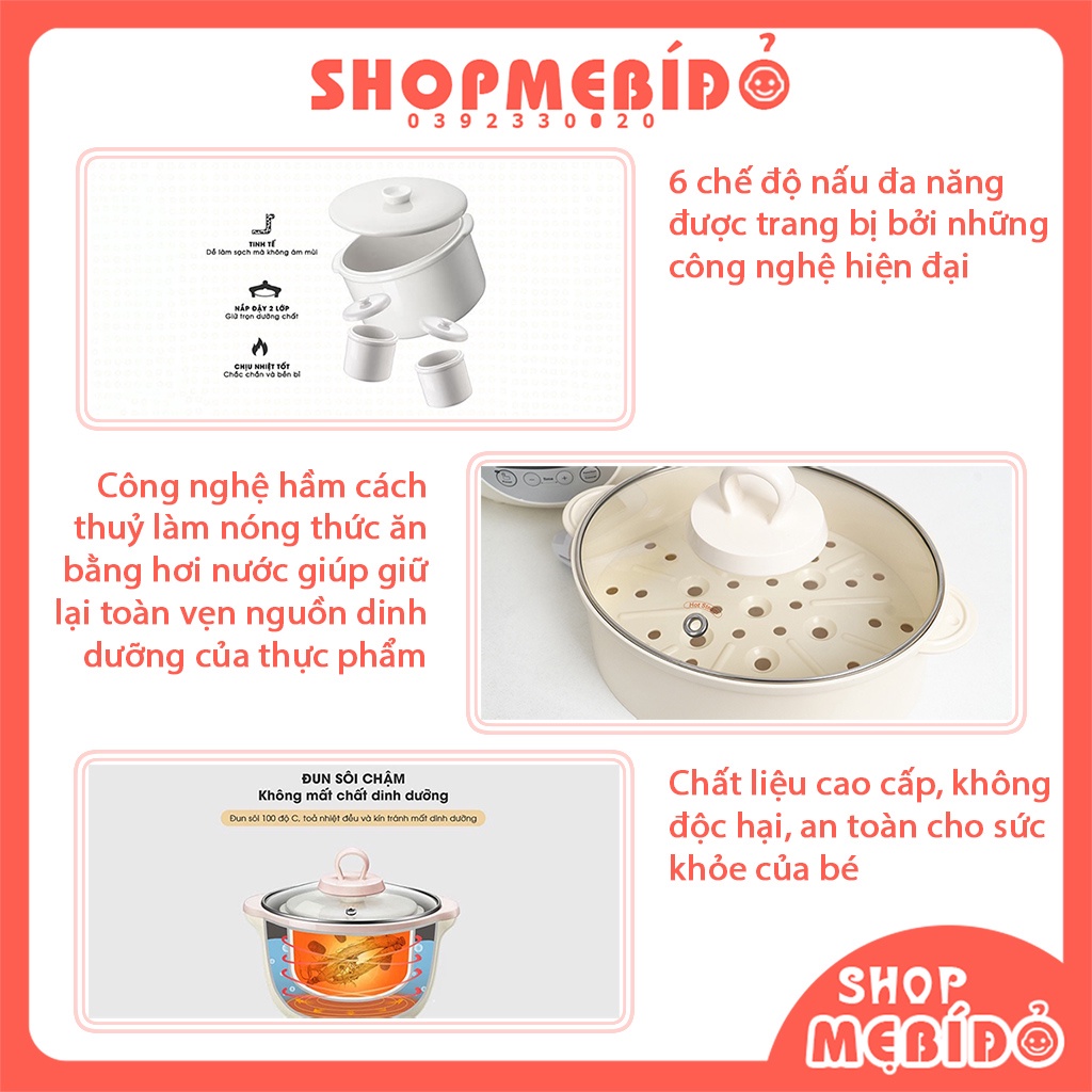 Giới thiệu Nồi Nấu Cháo Ninh Hầm Cách Thuỷ Cho Bé Bear 1,6L Shop Mẹ Bí Đỏ GD13