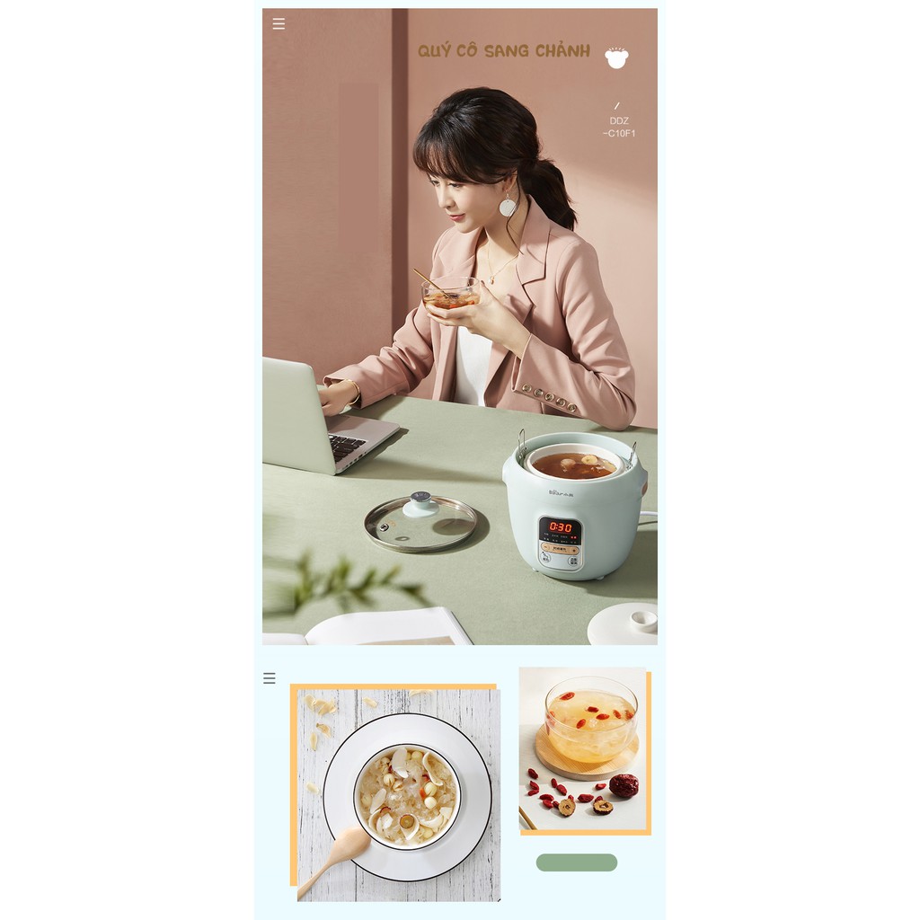 Thiết Bị Điện Gia Dụng > Đồ gia dụng nhà bếp > Nồi nấu chậm & Dụng cụ nấu chân không || Nồi nấu cháo ninh hầm cách thuỷ hãng BEAR DDZ-C10F1 1 lít (bảo hành 12 tháng)Còn hàng