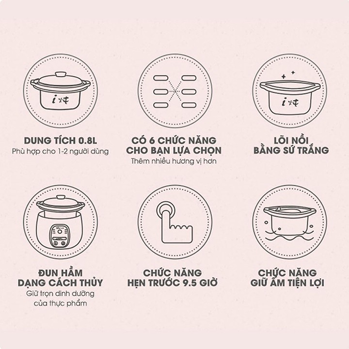 Sản phẩm với các chức năng tiện dụng như nấu cháo, hầm thực phẩm, hâm giữ nóng đồ ăn.