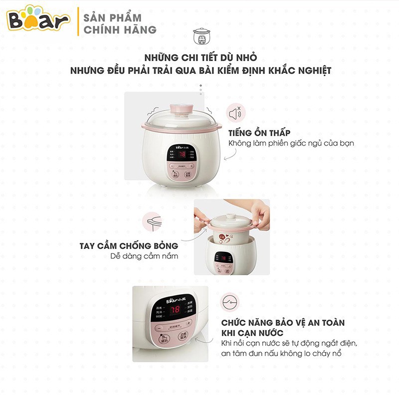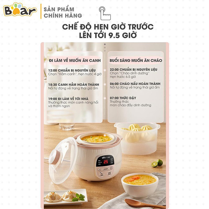 Nồi nấu cháo - Nồi ninh hầm cách thủy, hấp thức ăn cực tiện lợi cho mọi gia đình 0.8LBEAR NỒI HẦM ĐA NĂNG KÈM LỒNG HẤP 0.8L DDZ-B08C1 - TIỆN DỤNG HƠN CHO CUỘC SỐNG HIỆN ĐẠI
