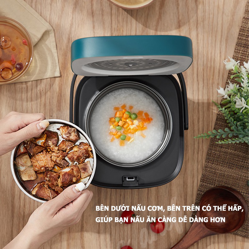 Nồi Nấu Cơm Điện Mini Đa Năng Dung Tích 1.2 Lít, Nồi Nấu Cháo, Hấp, Luộc Tiện Lợi Dành Cho Gia Đình