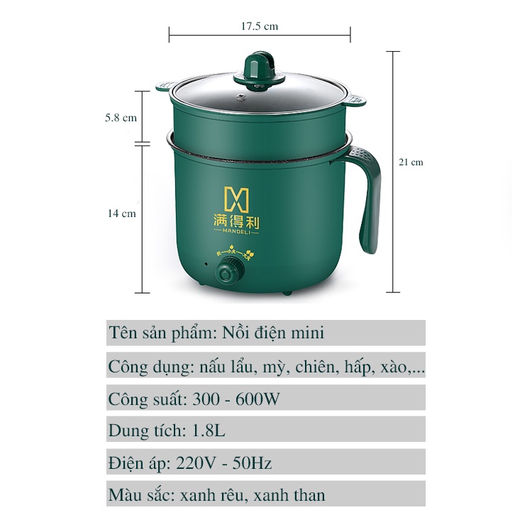 Thiết Bị Điện Gia Dụng > Đồ gia dụng nhà bếp > Nồi nấu đa năng || Nồi Nấu Cơm/Lẩu Đa Năng 2 Tầng Có Tay Cầm 1,8L Mẫu Mới MÀU XANH - NỒI 2 NẤC NHIỆTCòn hàng