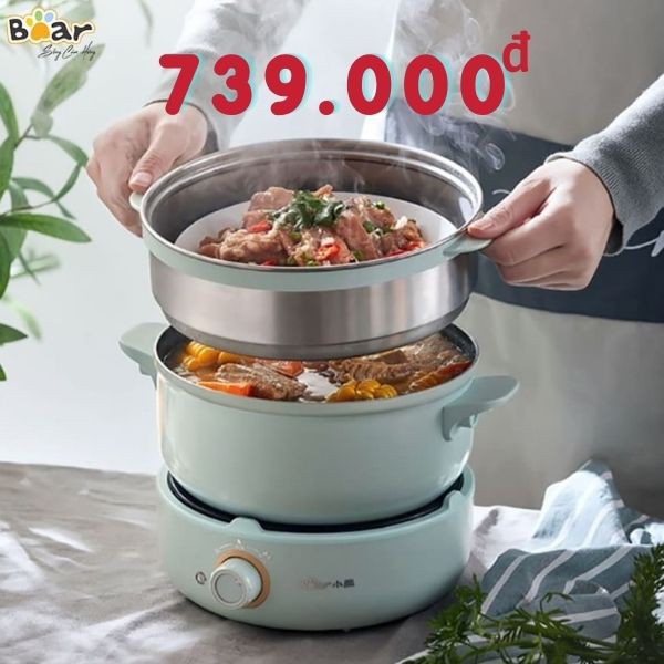 Nồi lẩu điện đa năng mini 2,5L Bear (Kèm lồng hấp, Không kèm chảo). Nồi điện đa năng mini BEAR| Gia dụng Hagu.ĐÃ KẾT THÚC CHƯƠNG TRÌNH KÈM CHẢO. SẢN PHẨM BAO GỔM 1 NỒI KÈM LỒNG HẤP.