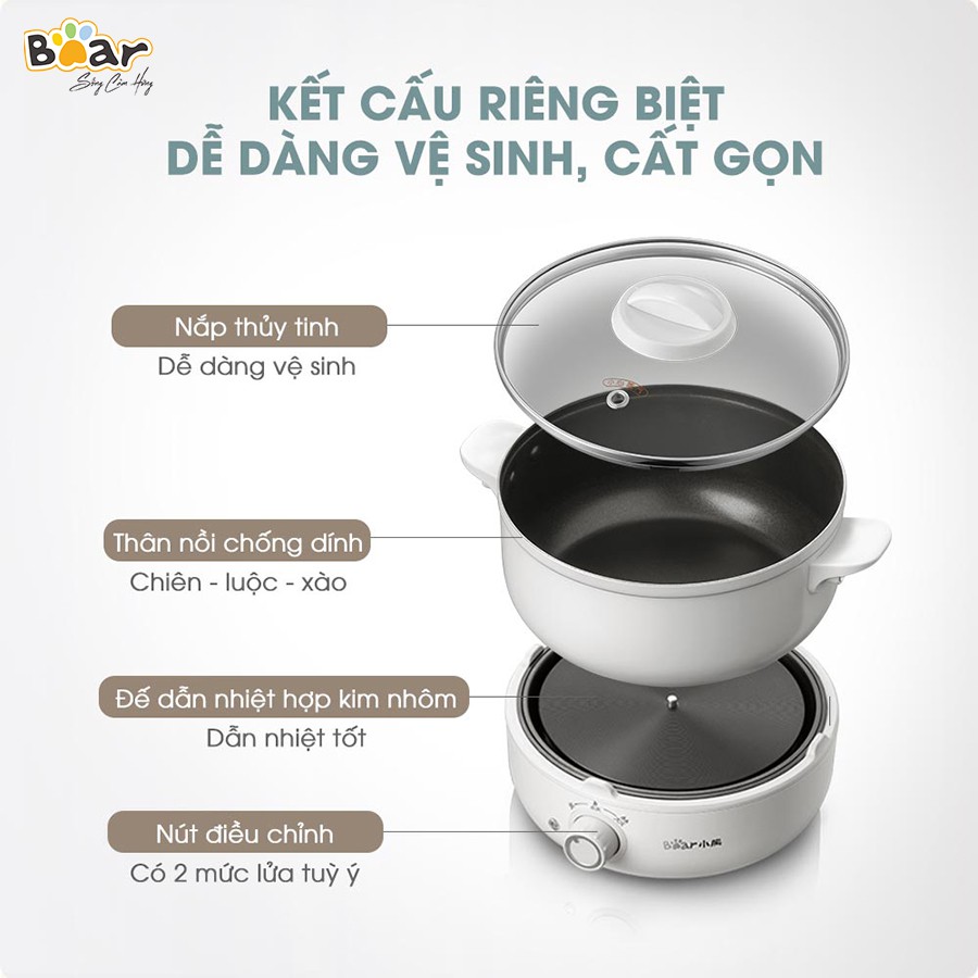 Nồi nấu đa năng Bear DHG-B25V1 (Kèm lồng hấp) - Bản Quốc Tế
